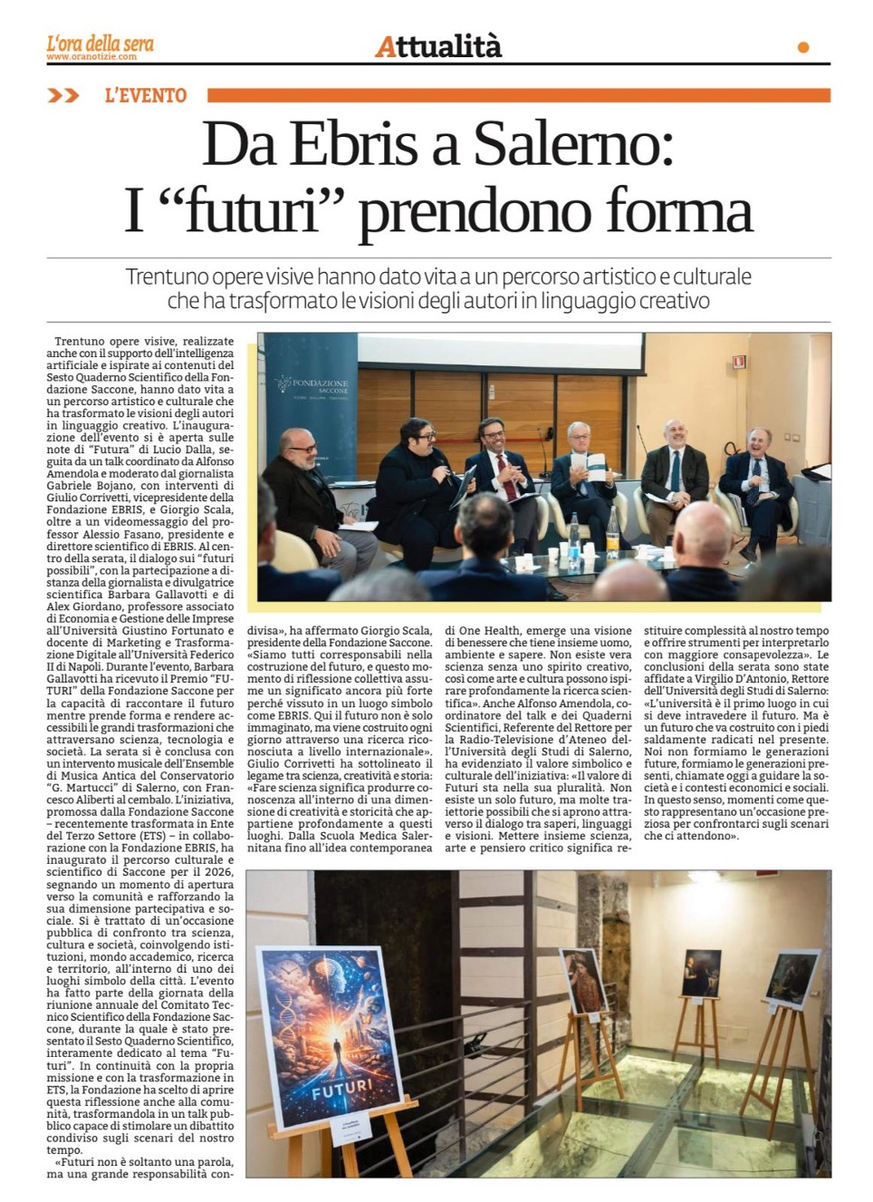 DA EBRIS A SALERNO I “FUTURI” PRENDONO FORMA: TECNOLOGIA E UMANITÀ AL CENTRO DELL’INIZIATIVA DELLA FONDAZIONE SACCONE