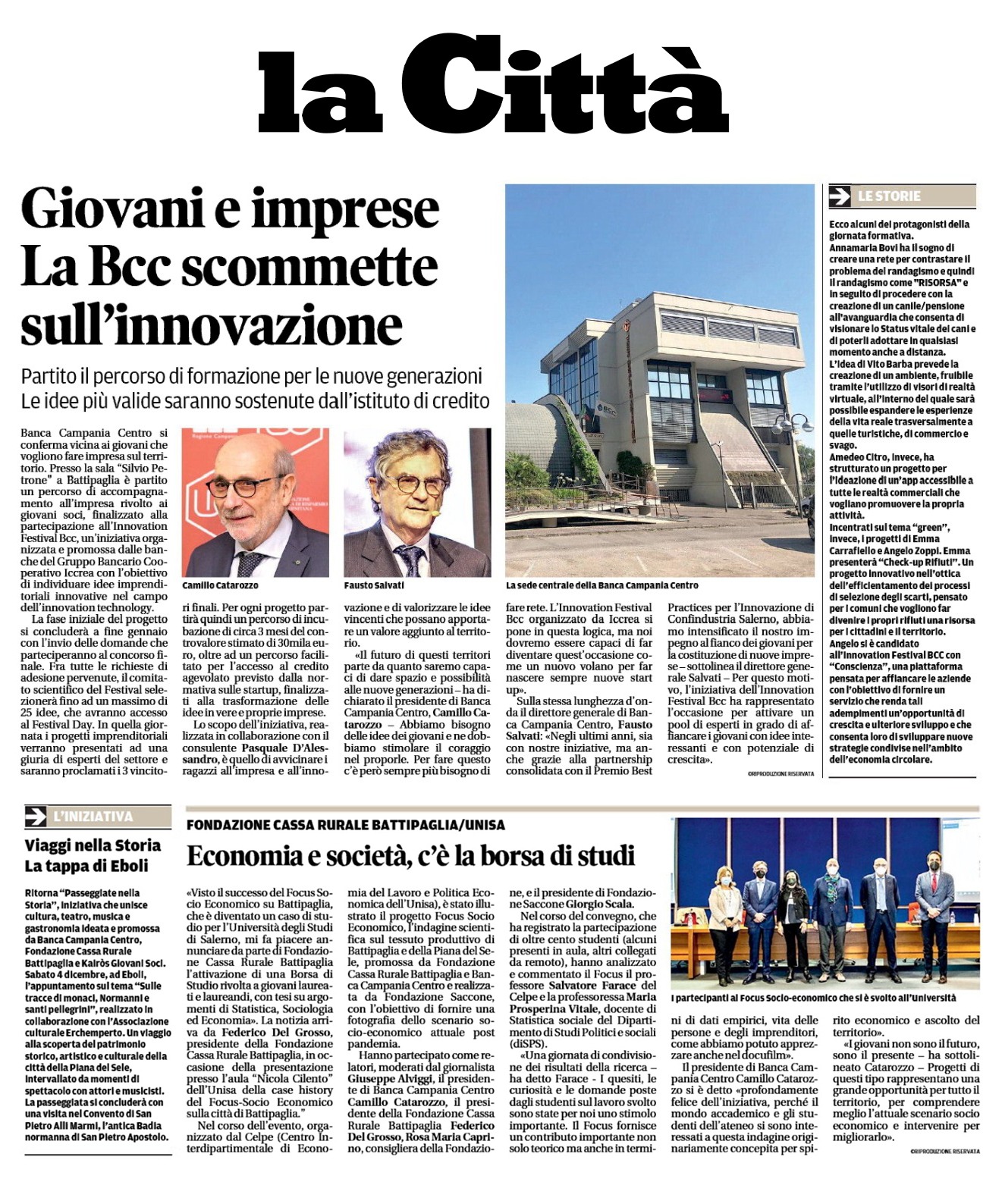Sul quotidiano La Città di Salerno ampio spazio alla presentazione della case history del Focus Socio-Economico sulla città di Battipaglia, promosso da Fondazione Cassa Rurale Battipaglia e Banca Campania Centro e realizzato da Fondazione Saccone e dal CELPE dell’Università degli Studi di Salerno.