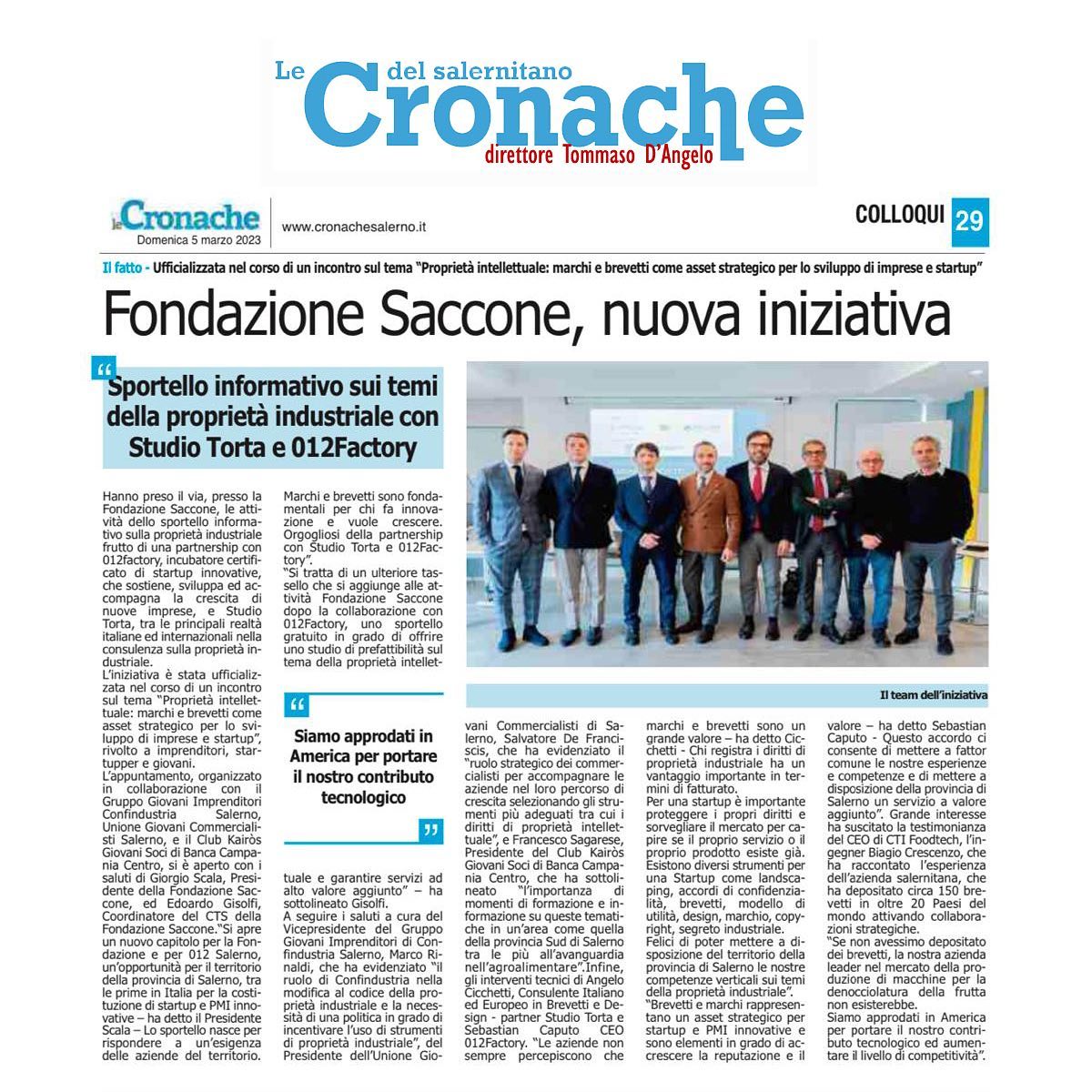 Sul quotidiano Le Cronache un approfondimento dedicato all’attivazione di uno sportello informativo sui temi della proprietà industriale con Studio Torta e 012factory.