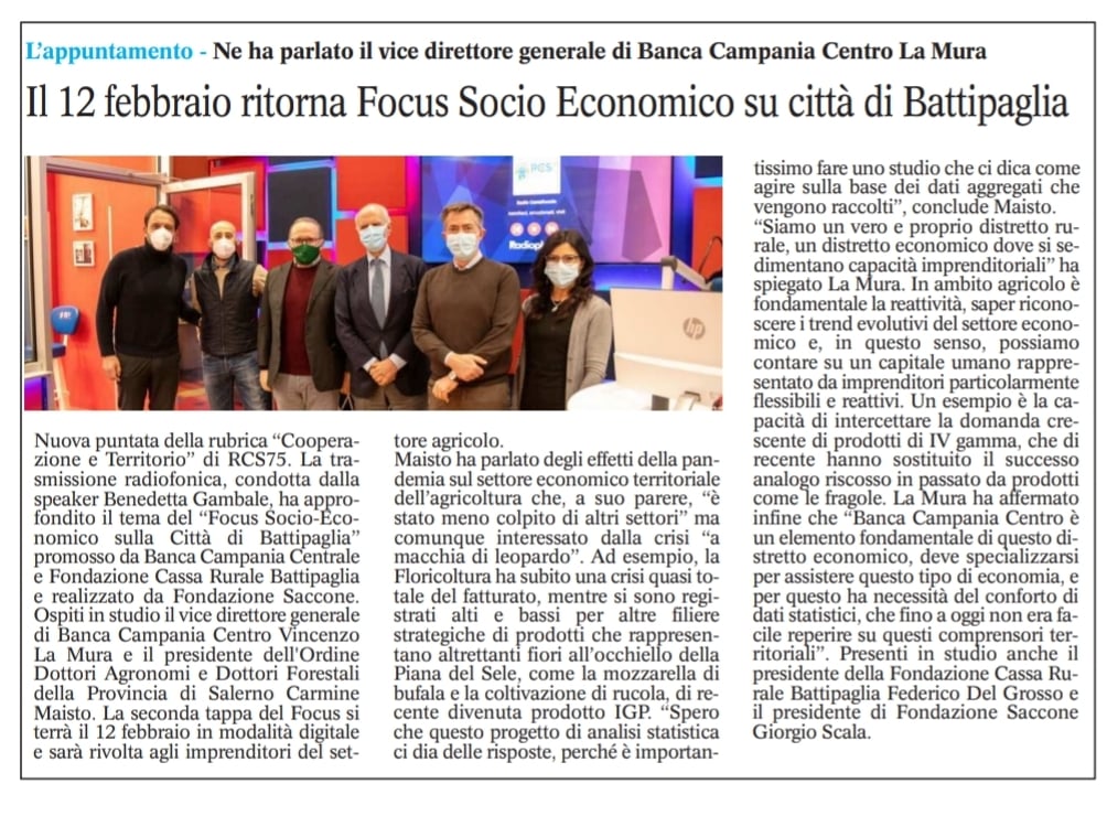 Oggi su Le Cronache un approfondimento sul Focus Socio Economico sulla città di Battipaglia. Un progetto promosso da Fondazione Cassa Rurale Battipaglia e Banca Campania Centro e realizzato grazie al nostro supporto.